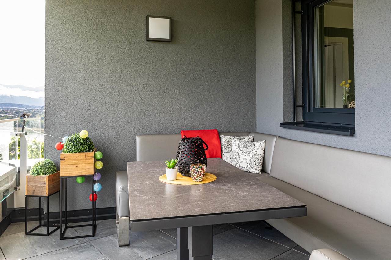 Ein gemütlicher Sitzbereich lädt zum Entspannen ein, während das moderne Badezimmer mit Dusche und Föhn für Komfort sorgt. Die gut ausgestattete Küche ermöglicht es Ihnen, Mahlzeiten selbst zuzubereiten. Ein Highlight ist die großzügige Terrasse mit herrlichem Seeblick, perfekt für entspannte Stunden im Freien.